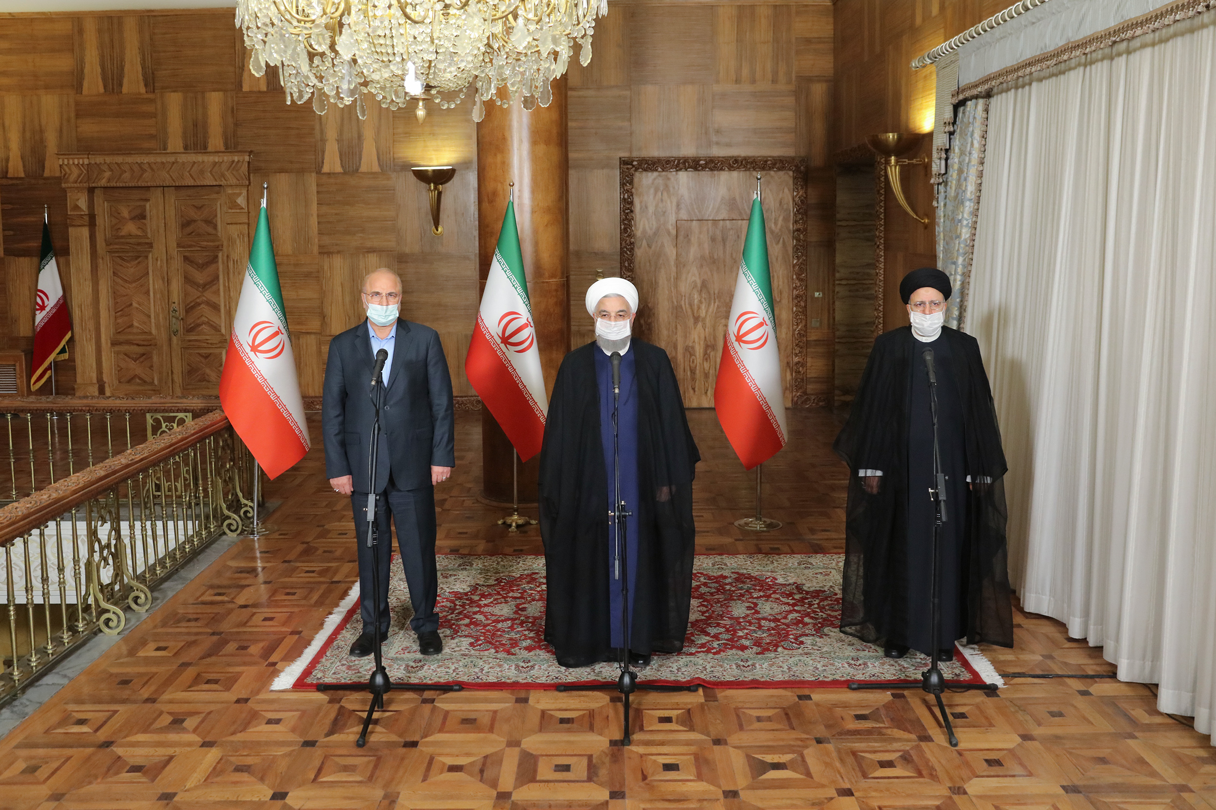 رئیس جمهور در پایان نشست با حجت الاسلام و المسلمین سید ابراهیم رئیسی رئیس قوه قضائییه و دکتر محمد باقر قالیباف رئیس مجلس شورای اسلامی، اظهارداشت که مهمترین مسایل کشور و عمدتا مسایل اقتصادی در این جلسه سران سه قوه مورد بحث و تبادل نظر قرار گرفت.